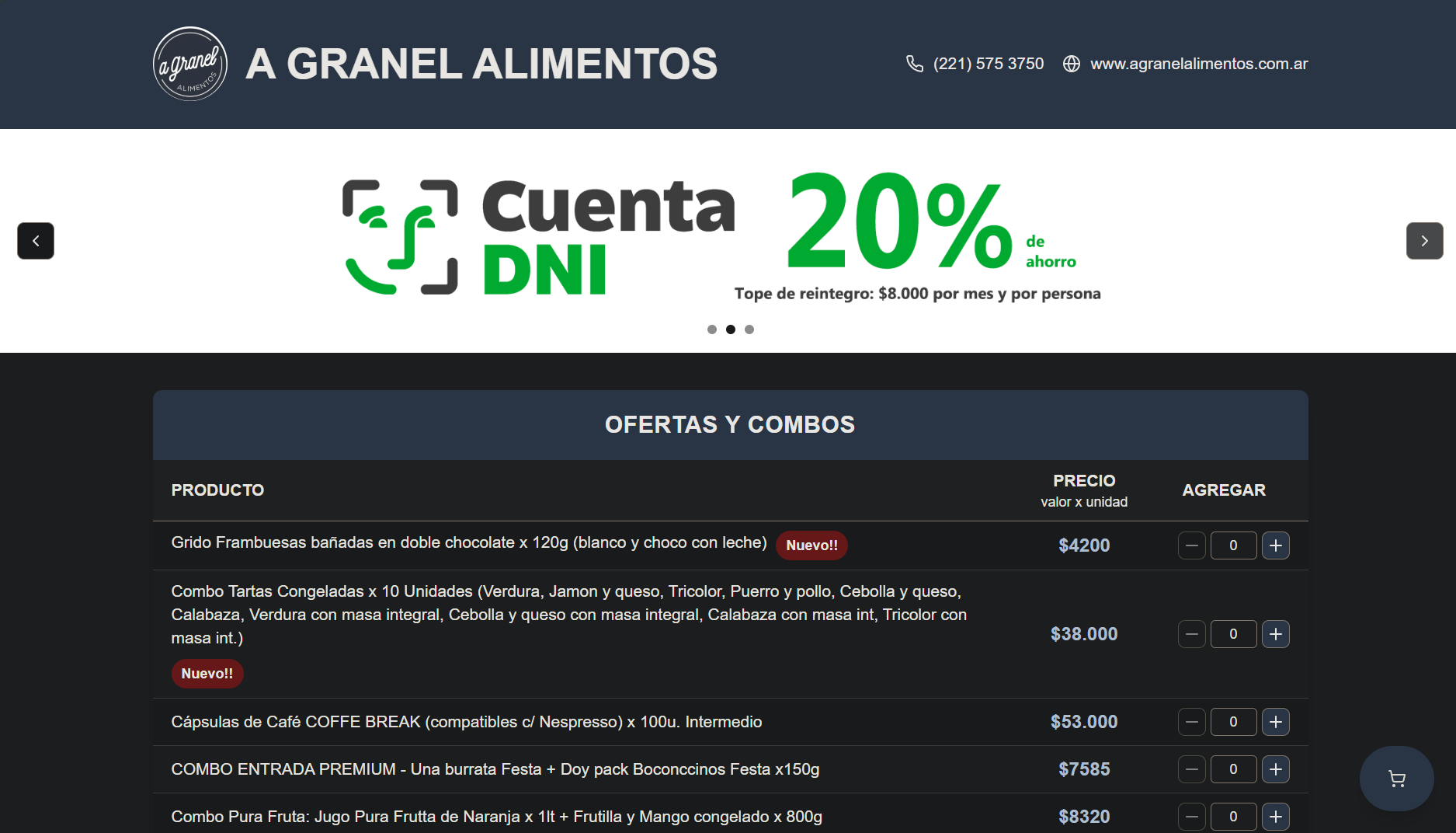Web de un dietetica para generar un pedido por whatsapp, agregando al carrito por cantidad